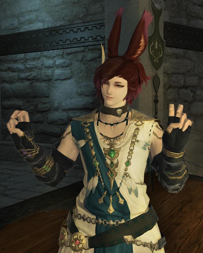 Likely has a reputation that precedes him in popular hubs (Limsa Lominsa and Gridania especially). Known for his bad attitude as well as his herbal knowledge and remedies.Enjoys flirting with people that are angry with him or have equally malicious intent towards him.Has a gambling problem and can be easily manipulated with a game.When genuinely good people take interest in him, he considers it a personal mission to correct their world view and teach them a lesson, it's a favor in the long run you see...He likes to make himself a problem, your personal pet problem, a problem you just can't shake (though maybe you could pay him to go away...)